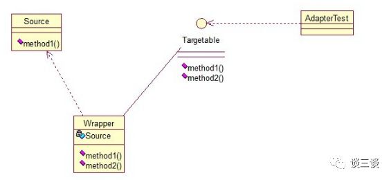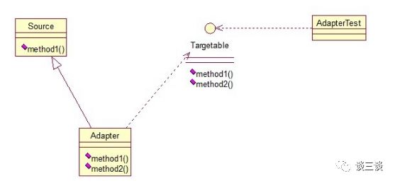 核心思想就是有一个Source类,拥有一个方法,待适配,目标接口时Targetable,通过Adapter类,将Source的功能扩展到Targetable里。