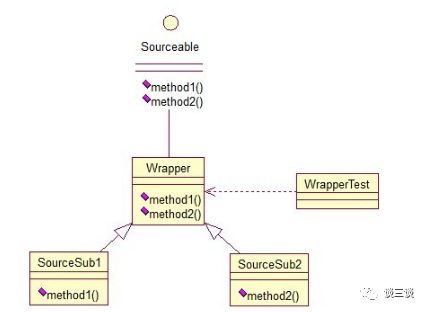 比如我们有一个接口Sourceable中定义了很多方法(接口中方法是抽象的),假如我们只需要实现并使用其中一个方法,但是此时我们必须实现接口中定义的所有方法,哪怕其他方法是空实现。用接口适配器模式,我们定一个类Wrapper实现这个Sourceable接口中所有方法,然后我们需要使用哪个方法,就交给Wrapper的子类SourceSub1或者SourceSub2去覆写某一方法即可。