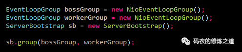 其实这个方法最终还是调用了sb.group(bossGroup, workerGroup),只不过bossGroup和workerGroup是同一个对象。那如果使用单线程模型呢?很简单,通过配置参数:io.netty.eventLoopThreads来指定线程的数量,如果不配置则默认是cpu数量的两倍。配置为0或者1则只使用一个线程。
