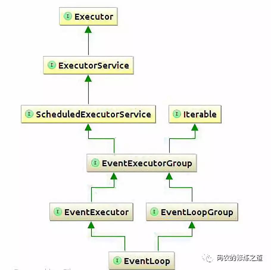 从上图中可以看出,一个EventLoopGroup就相当于一个线程池,而每一个EventLoop就是一个线程,当新的Channel被创建时(有新的请求进来),就会在EventLoopGroup里注册一下,同时会分配一个EventLoop给这个Channel,从此开始直到这个Channel被销毁,这个Channel只能被它绑定的这个EventLoop执行,这也就是为什么Netty可以不用考虑并发的原因。由此可见,会存在多个Channel去竞争同一个EventLoop的情况,那此时执行线程的处理逻辑是怎样的呢?也很简单:如果Channel所绑定的那个线程是空闲的,则执行任务,否则去排队。一个EventLoopGroup里面可以包含多个EventLoop,顶层都是都基于Java的执行器Executor的,他们的继承关系如下: