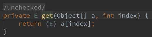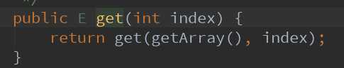 这个get方法就是返回指定下标的元素。这里在方法上面标注了unchecked,也就是说明index需要调用者自己检查是否越界。也就是说数组越界,会报IndexOutBoundsException。