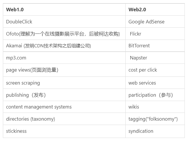 在2004年10月举行的首届Web 2.0会议上,列出了一套初步原则。第一条是 "网络作为平台"。在当时,Web1.0时代的当红炸子鸡网景公司和微软Battle后倒闭。更重要的是,最初的两个Web 1.0时代典范,DoubleClick和Akamai,其实都是将网络作为平台的先驱。