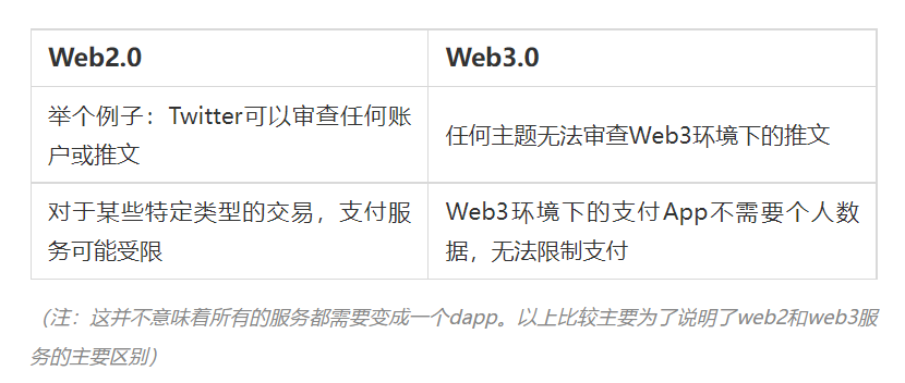按照以太坊的定义:Web2 指的是我们如今众所周知的互联网版本。具体指的是,通过个人数据和信息交换来提供服务互联网公司。在以太坊的范畴内,Web3指的是在区块链上运行的去中心应用程序。所有用户都可以参与构建/使用这些App,个人数据却不需要被出卖。