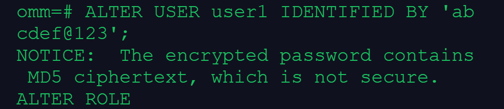 ALTER USER user1 IDENTIFIED BY 'abcdef@123';