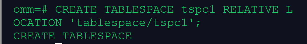 CREATE TABLESPACE tspc1 RELATIVE LOCATION 'tablespace/tspc1';