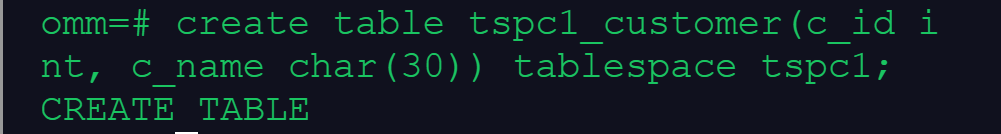 create table tspc1_customer(c_id int, c_name char(30)) tablespace tspc1;