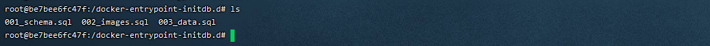 当进入该容器后,我们发现“docker-entrypoint-initdb.d”文件夹并发现与主机“database”文件夹下同样的数据库文件。
