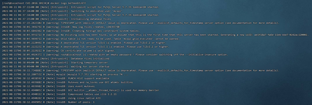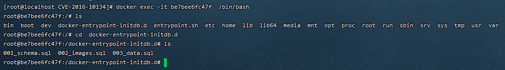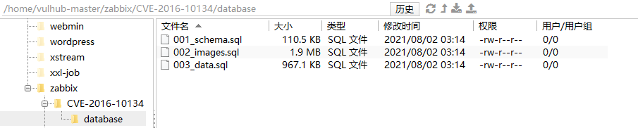 在docker-compose.yml中我们看到关于volumes的配置,目的是把/zabbix/CVE-2016-10134项目下的database文件映射到容器当中的“/docker-entrypoint-initdb.d/”文件夹下。