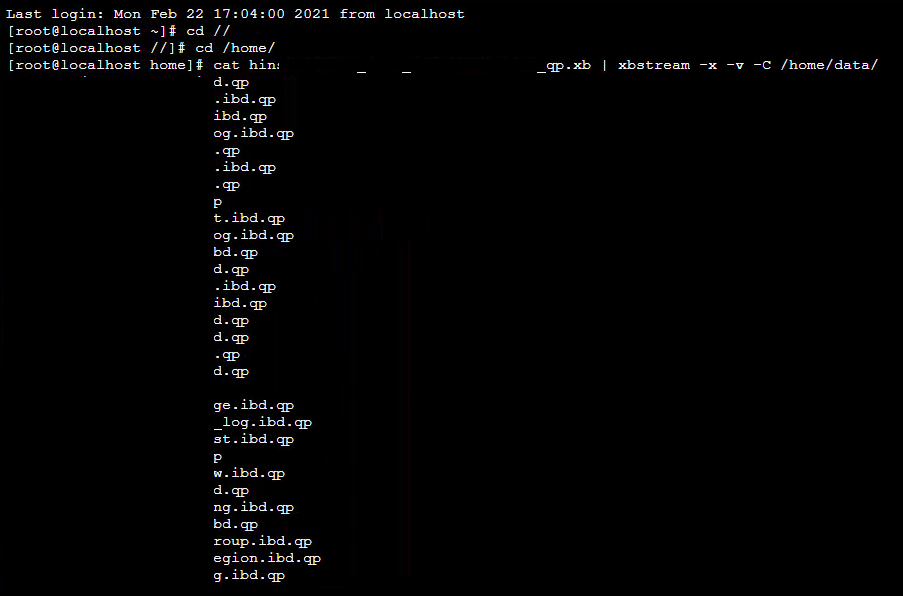 cat xxx.xb | xbstream -x -v -C /home/data/ 解包至/data