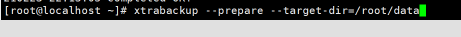 #执行如下命令,恢复解压好的备份文件。/home/mysql/data为解压后的备份文件路径,/var/lib/mysql为要恢复到的路径,可自定义## MySQL 8.0xtrabackup --prepare --target-dir=/home/mysql/dataxtrabackup --datadir=/var/lib/mysql --copy-back --target-dir=/home/mysql/data