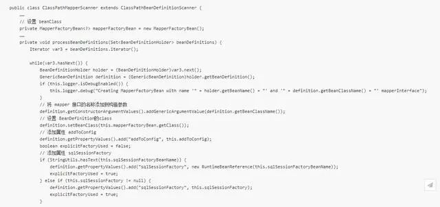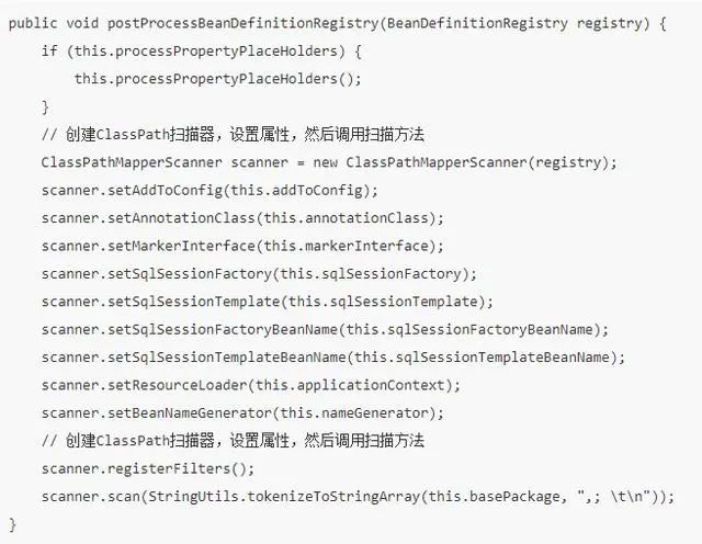 此处 super.doScan(basePackages) 是 Spring 中的方法,就不贴代码多叙述了,想详细了解的话,可以自己翻一下源码哦。