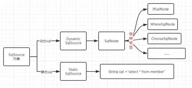 MyBatis 会把每个 SQL 标签封装成 SqlSource 对象。然后根据 SQL 语句的不同,又分为动态 SQL 和静态 SQL 。其中,静态 SQL 包含一段 String 类型的 SQL 语句;而动态 SQL 则是由一个个 SqlNode 组成