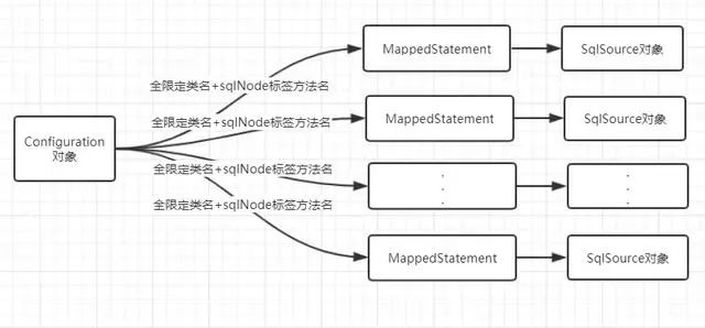 把所有的 XML 都解析完成之后,Configuration 就包含了所有的 SQL 信息。然后解析完成的 XML 大概就是这样了: