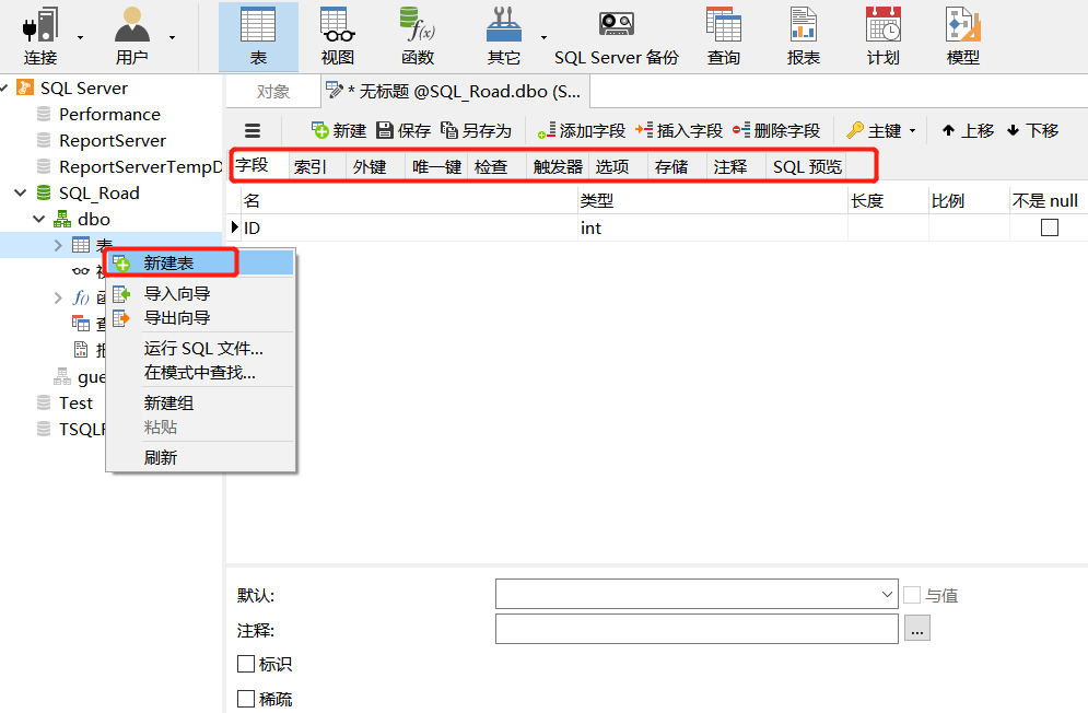这个是比较常见的功能,相比其他管理工具,Navicat将建表过程中所涉及的各种常用功能都包含进去了,包含新字段,索引,主键,外键,唯一键等等与表有关的内容,具体如下图: