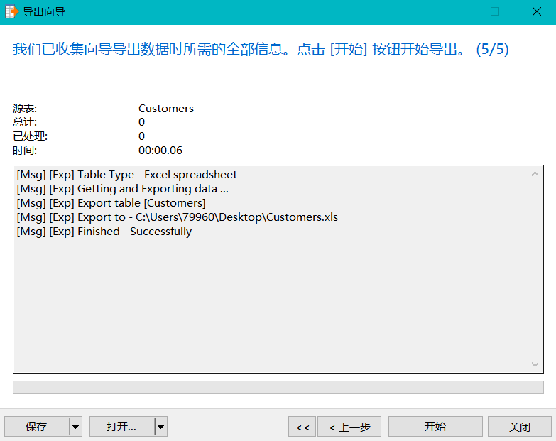 点击开始执行导出操作
