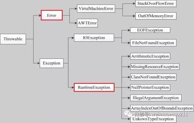 Exception与Error都继承了Throwable类,在java中只有Throwable类型的实例才可以抛出(throw)或者捕获(catch),它是异常处理机制的基本组成类型。