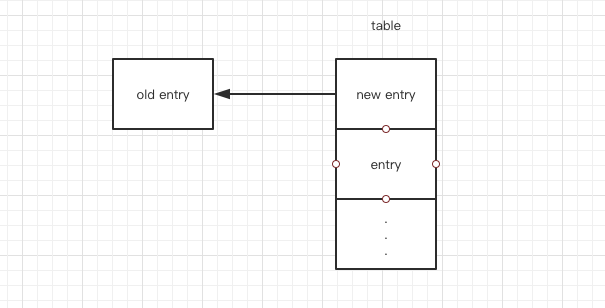 如果经计算后hash值不同,会从新生成一个entry并放在数组table中,结构如下