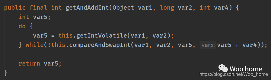 } while(!this.compareAndSwapInt(var1, var2, var5, var5 + var4));
