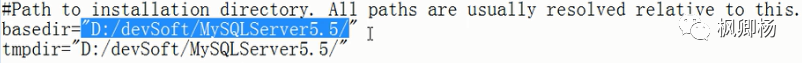 basedir=”D:/devSoft/MySQLServer5.5/”