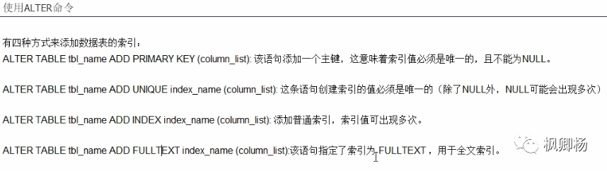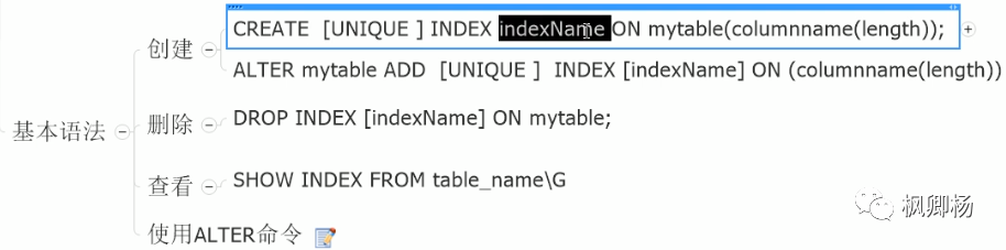 索引:create index idx_user_name on user(name);---idx_user_name(一般索引命名规则)