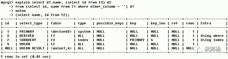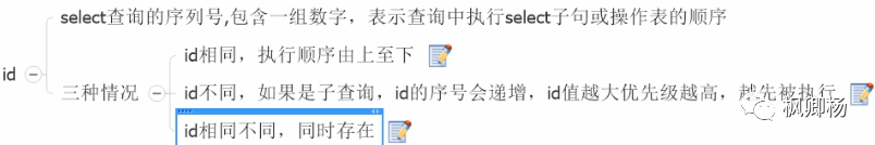 总结:这里其实主要看的是表的读取顺序---原则:id值越大,表的读取顺序就越前。当id值相同的时候,就按照table字段中显示的,按照顺序走。