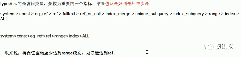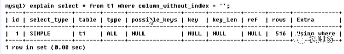 表只有一行记录(等于系统表),这是const类型的特例,平时不会出现,这个几乎可以忽略不计