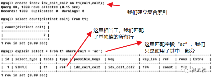 #最佳左前缀法制:如果索引了多列,要遵循最做前缀法则,指的是查询从索引的最左前列开始并且不跳过索引中的列
