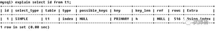 解析:这里id为主键索引,我们进行查询的时候,相当于对全索引扫描