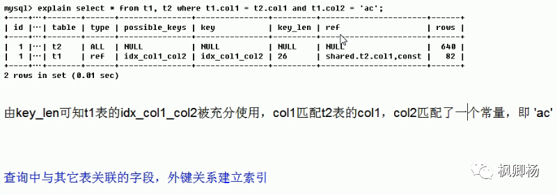 EXPLAIN SELECT id,author_id FROM article WHERE category_id=1 AND comments>1 ORDER BY views DESC LIMIT 1;(这里我们建立多值索引,可能会出现索引失效的问题)