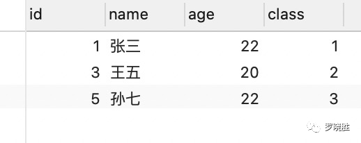 INSERT INTO `student` VALUES (5, '孙七', 22, 3);