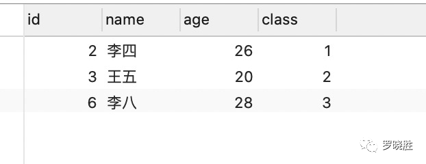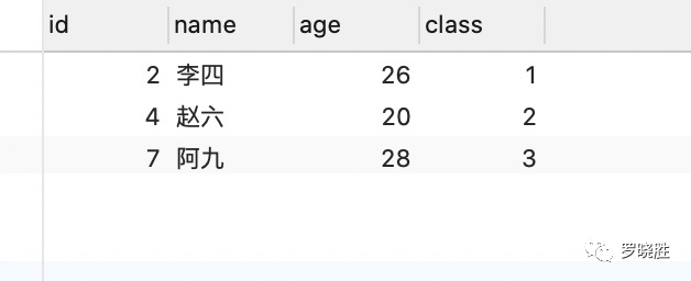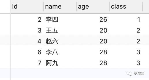 INSERT INTO `student` VALUES (6, '李八', 28, 3);INSERT INTO `student` VALUES (7, '阿九', 28, 3);