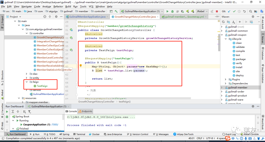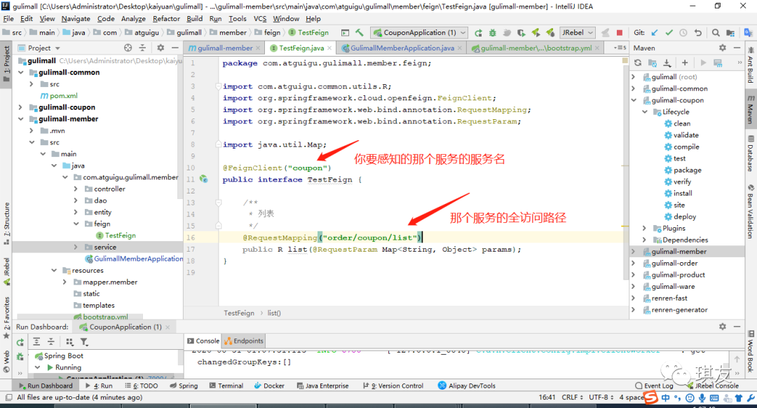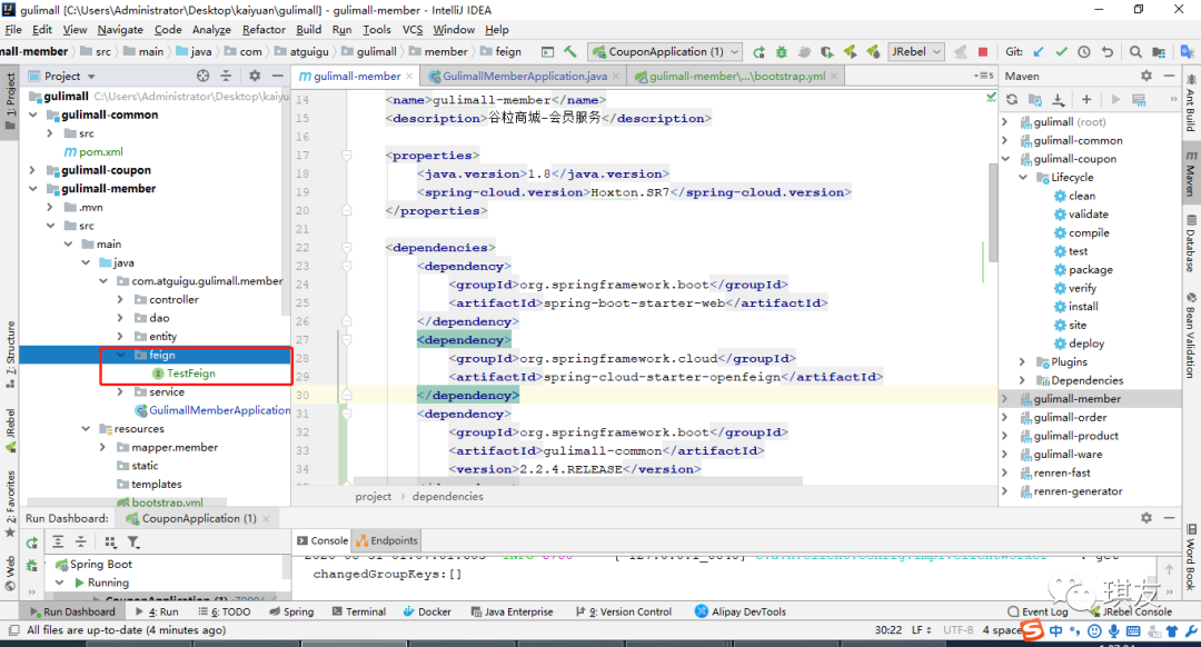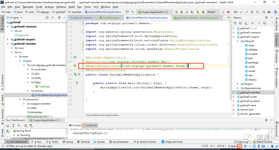上面说了注册中心的作用就是让其他服务感知到自己,现在就来使用feign测试一下