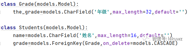 建立级联以后,相当于第二张表中的grade_id 对应的就是第一张表中的id