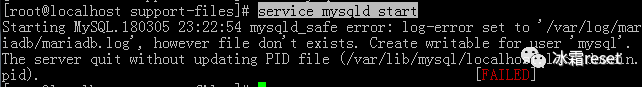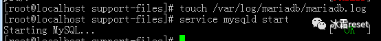 mkdir /var/log/mariadb 创建目录touch /var/log/mariadb/mariadb.log 创建文件service mysqld start