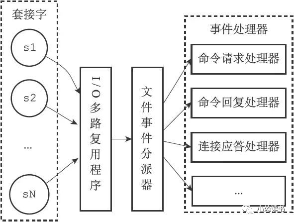 采用IO多路复用程序来同时监听多个套接字,并根据套接字目前执行的任务来关联不同的事件处理器