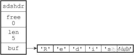 struct sdshdr{// 记录buf数组中已经使用的字节数量,等于SDS保存的字符串长度int len;// 记录buf数组中未使用的字节数量int free;// 字节数组,用于保存字符串char buf[];}