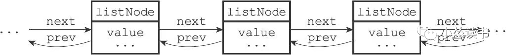 链表的实现listNode结构是一个双向链表:prev和next两个指针。如下。
