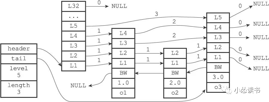 typedef struct zskiplistNode {//层struct zskiplistLevel {//前进指针struct zskiplistNode *forward;//跨度unsigned int span;} level[];//后退指针struct zskiplistNode *backward;//分值double score;//成员对象robj *obj;} zskiplistNode