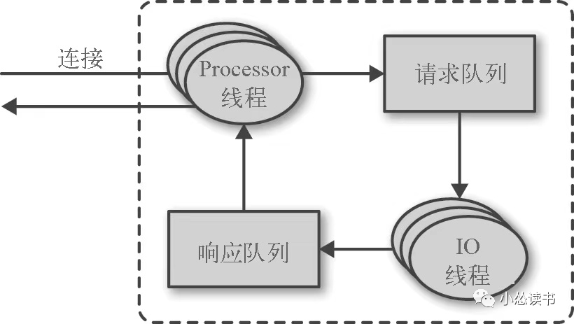 broker会在它所监听的每一个端口上运行一个Acceptor线程,这个线程创建一个连接,并把它交给Processor线程(网络线程)处理,Processor从客户端获取请求消息放到请求队列,从响应队列中获取消息返回。