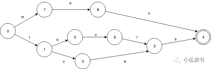 例如,假设我们有一个这样的Set: mon,tues,thurs。FSA是这样的: