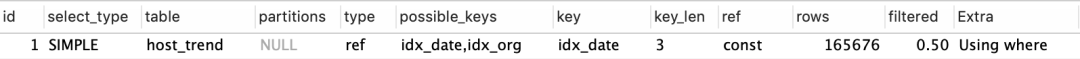如上图,mysql中给出了可能用到的索引idx_date、idx_org,最终选择idx_date索引