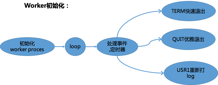 Worker 进程:处理客户端请求,从主进程处获得信号做相应的事情。
