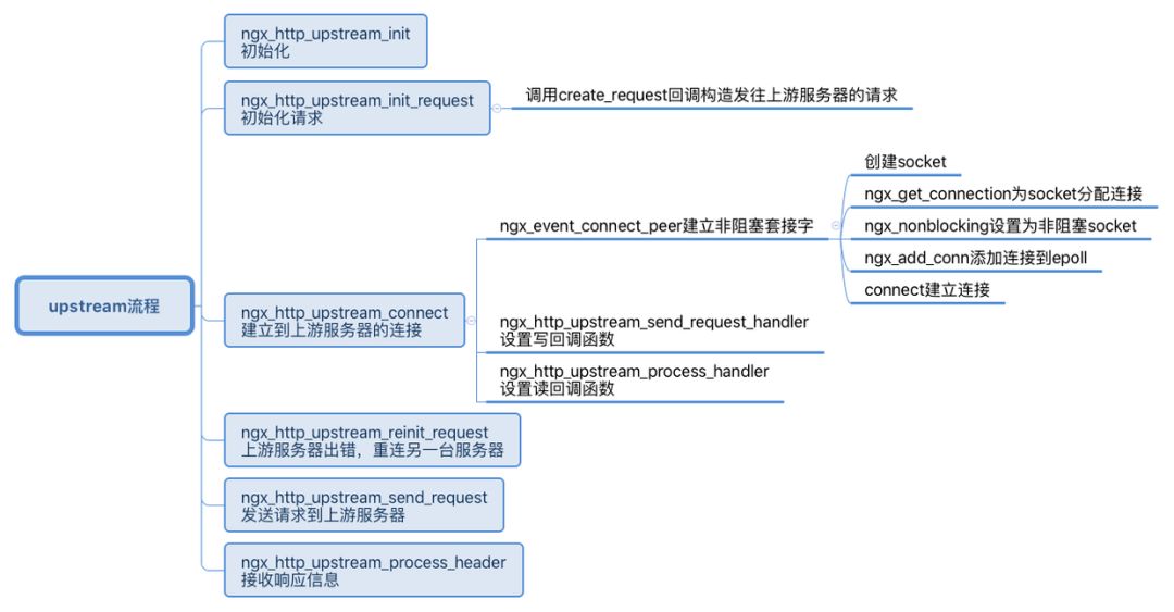 Upstream 模块:使 Nginx 跨越单机的限制,完成网络数据的接收、处理和转发,纯异步的访问后端服务。