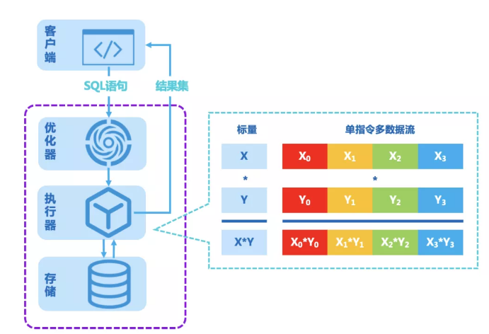 为什么OushuDB保证云原生架构的同时又能达成卓越的查询分析性能?我们可以着重说下说计算引擎。计算引擎就像跑车的发动机一样,直接决定了一台跑车的速度。执行器作为计算引擎中最重要的组件,它的优化策略直接决定了计算引擎的性能,也就是决定了一台跑车的马力和速度。OushuDB采用的是SIMD(单指令多数据流)的执行器优化策略,显著提升了执行器的效率。