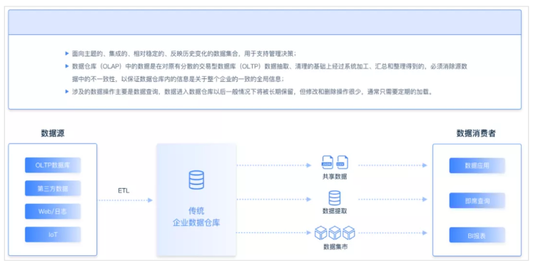 这一页展示了传统数据仓库的数据处理流程。今天我们要讨论的除了数据仓库本身,还可以看到近些年银行业的数据跨域融合需求不断增长,融合生态不断完善,构建湖仓一体化平台,实现湖内建仓、湖仓协同,进而对外提供离线和实时分析、以及交互式查询。