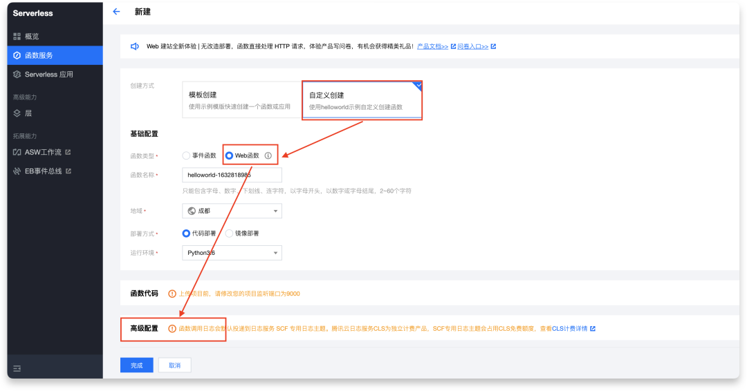 Web Function 产品文档: https://cloud.tencent.com/document/product/583/56123 Web Function 快速体验链接: https://console.cloud.tencent.com/scf/list-create?rid=16&ns=default&keyword=WebFunc