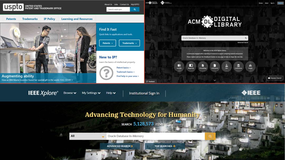 如果这些还不能满足好学的你,那么你可以通过美国专利与商标局或Google Patent搜索和下载Database In-Memory相关的专利文档,例如US9697221B2是关于OZIP压缩算法的专利,US10558659是关于基于字典压缩的Join和聚合的专利。也可在电气电子工程师学会(IEEE)和计算机协会(ACM)数字库中检索Database In-Memory相关论文。