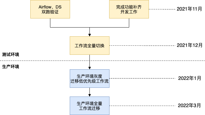 目前,DP平台还处于接入DolphinScheduler的灰度测试阶段,计划于今年12月进行工作流的全量迁移,同时会在测试环境进行分阶段全方位测试,包括调度性能测试和压力测试。确定没有任何问题后,我们会在明年1月进行生产环境灰度测试,并计划在3月完成生产环境的工作流全量迁移。