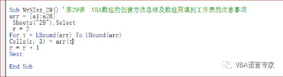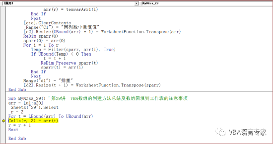Sub MyNZsz_29() '第29讲 VBA数组的创建方法总结及数组回填到工作表的注意事项