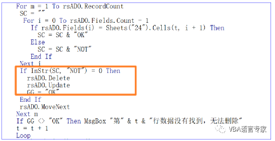 If GG <> "OK" Then MsgBox "第" & t & "行数据没有找到,无法删除"
